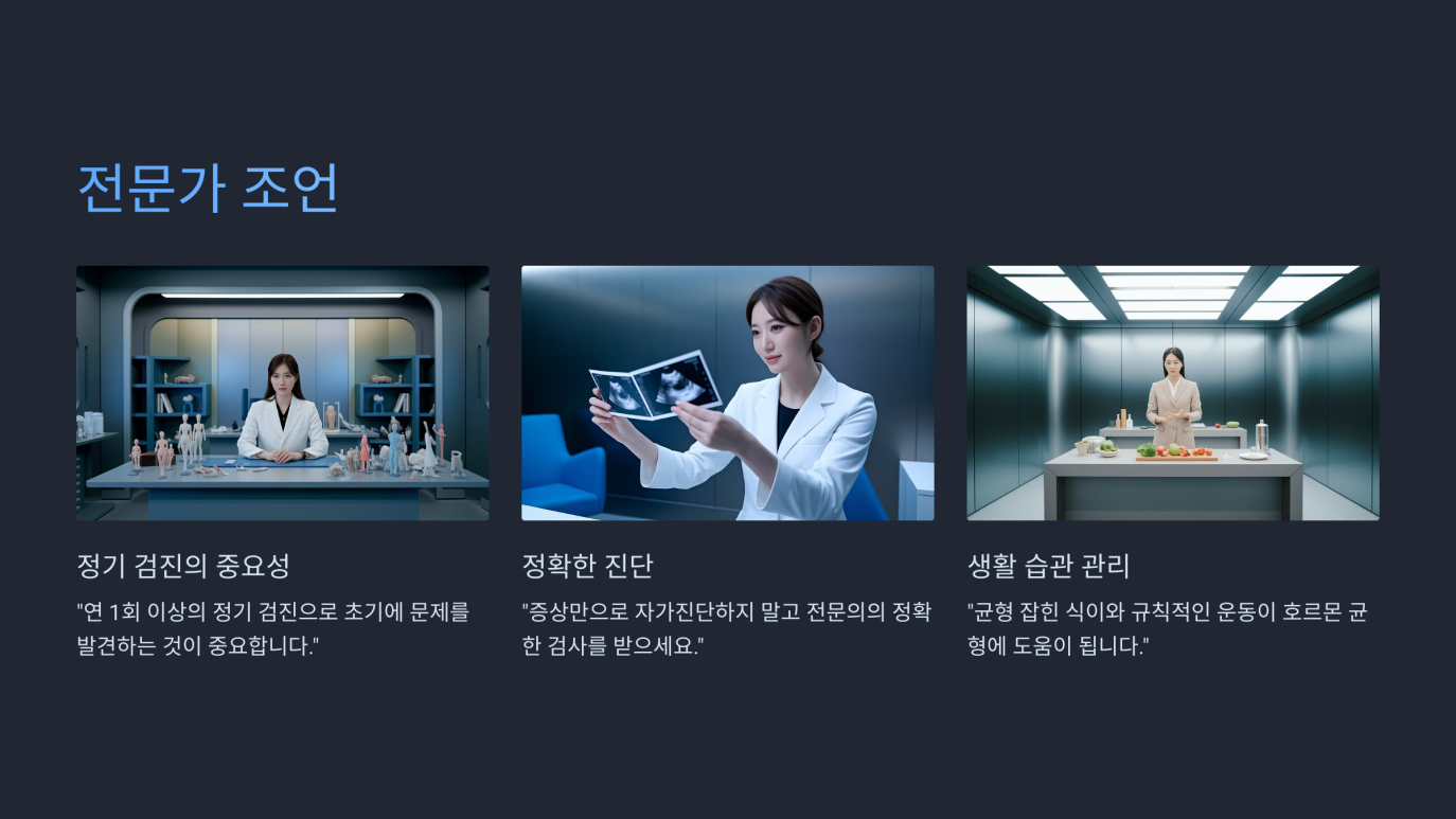 - 생활습관 개선, 규칙적 검진, 전문의 상담이 예방과 관리의 핵심입니다.
