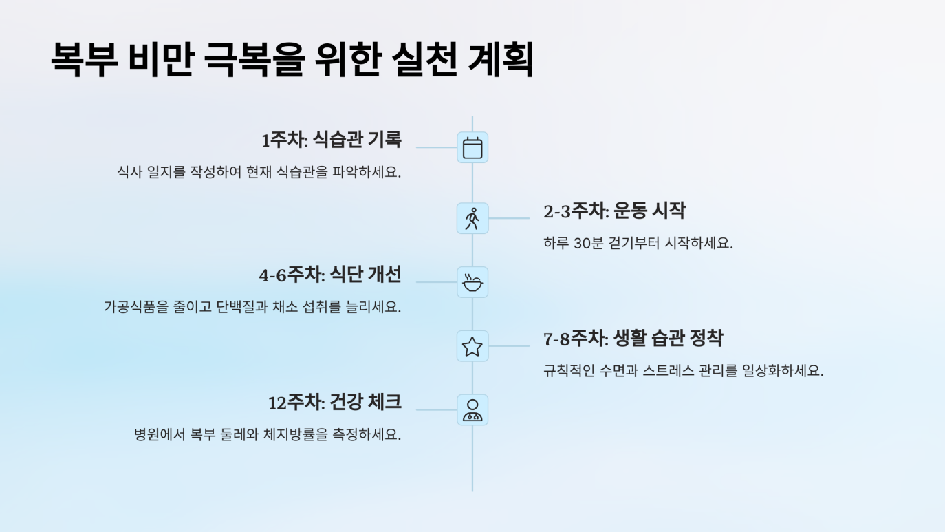꾸준한 노력이 쌓이면, 복부비만만 개선되는 것이 아니라 전신 건강과 체력, 그리고 자신감까지 상승한다는 사실을 경험하게 될 것입니다.