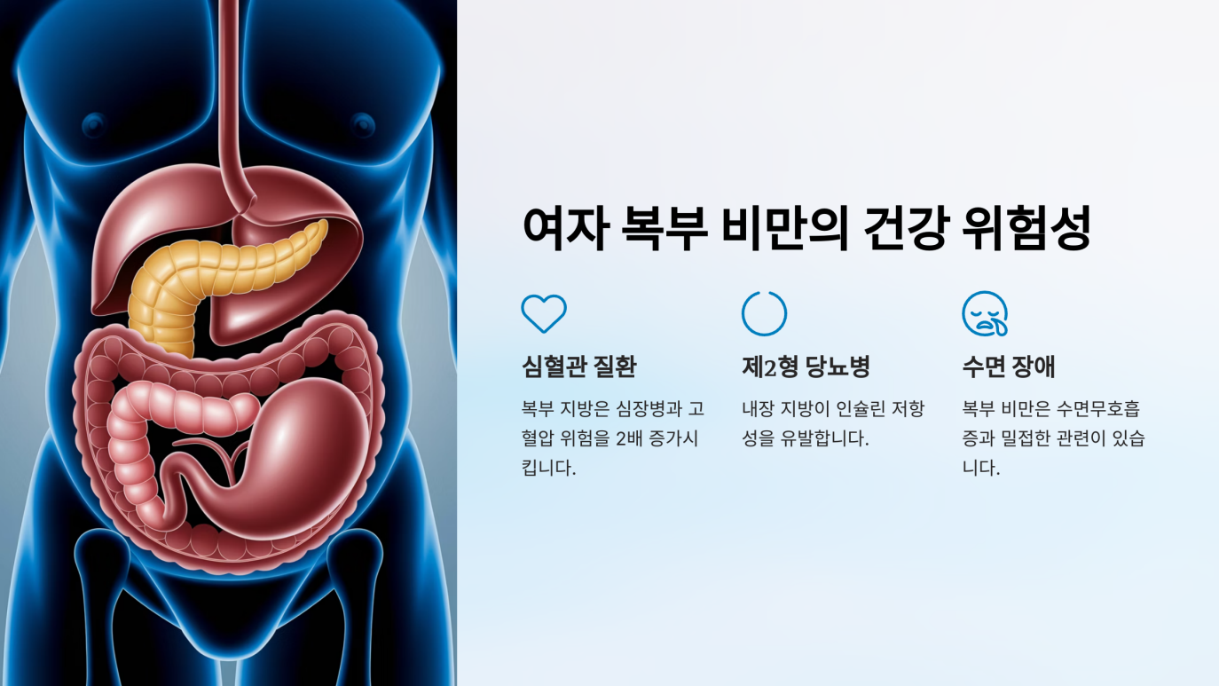- 자기 전 스마트폰, TV 시청 등을 자제하여 숙면을 유도하는 것도 여자복부비만 건강을 지키는 핵심 전략입니다.