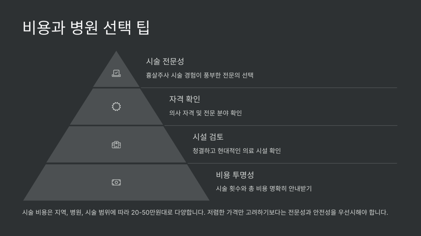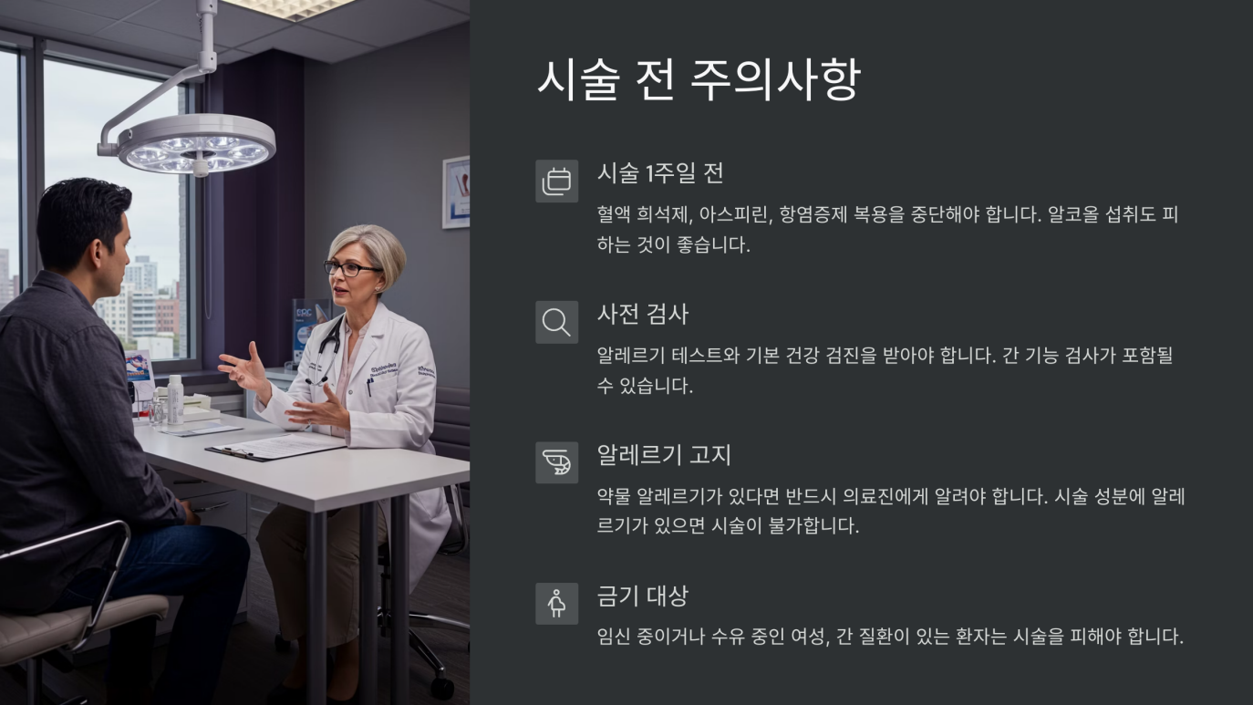 - 자기 판단만으로 시술을 결정하기보다는, 반드시 전문의의 소견을 듣는 것이 중요합니다.