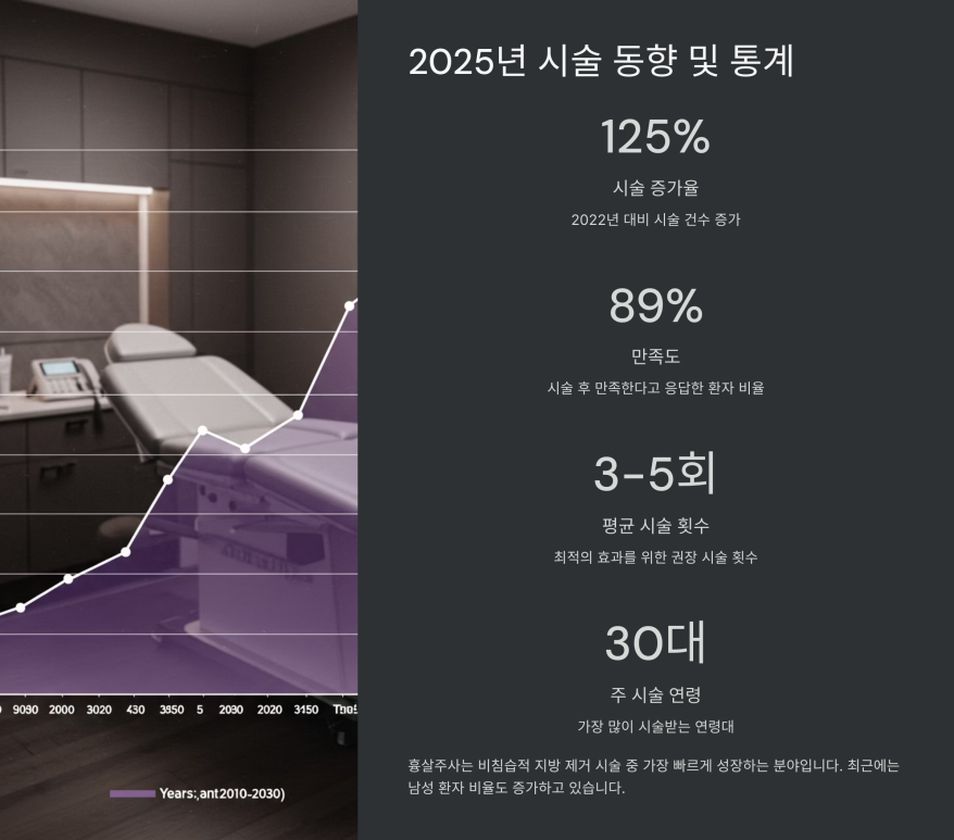이러한 통계는 미용 시술에 대한 관심이 꾸준히 높아지고 있음을 보여줍니다. 특히, 간편한 절차와 비교적 빠른 회복 기간이 흉살주사의 강점으로 작용하고 있습니다.