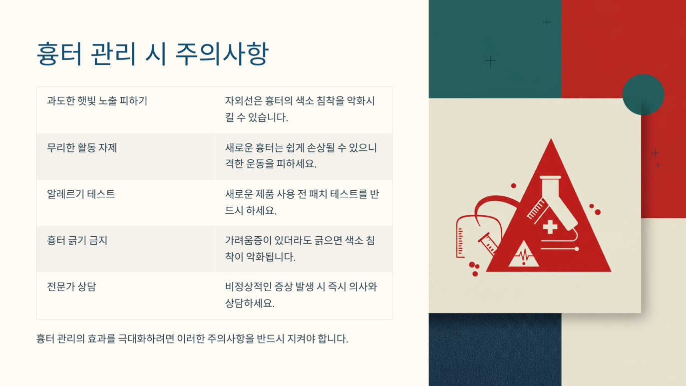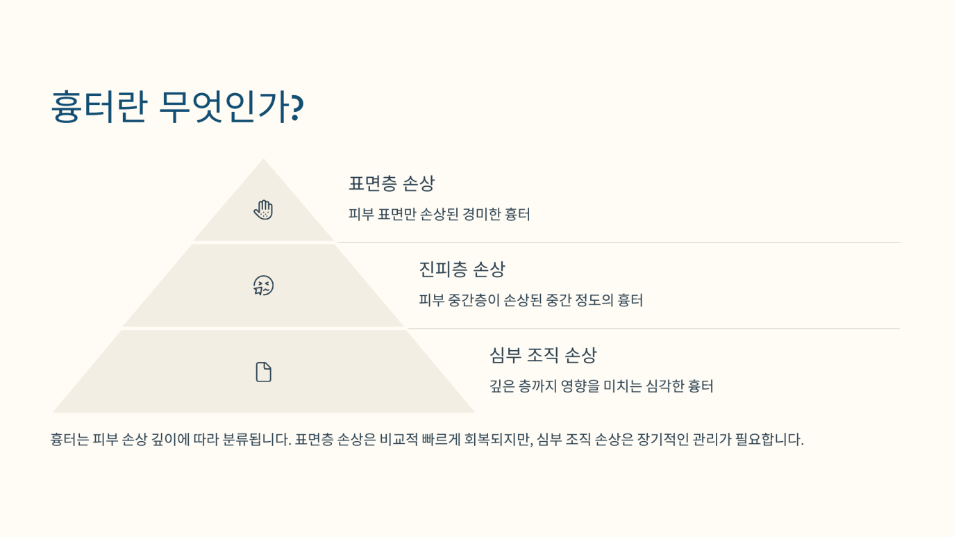 - 잘못된 민간요법 경계: 인터넷에 떠도는 민간요법을 무작정 적용하면 흉터가 오히려 더 심해질 수 있습니다.