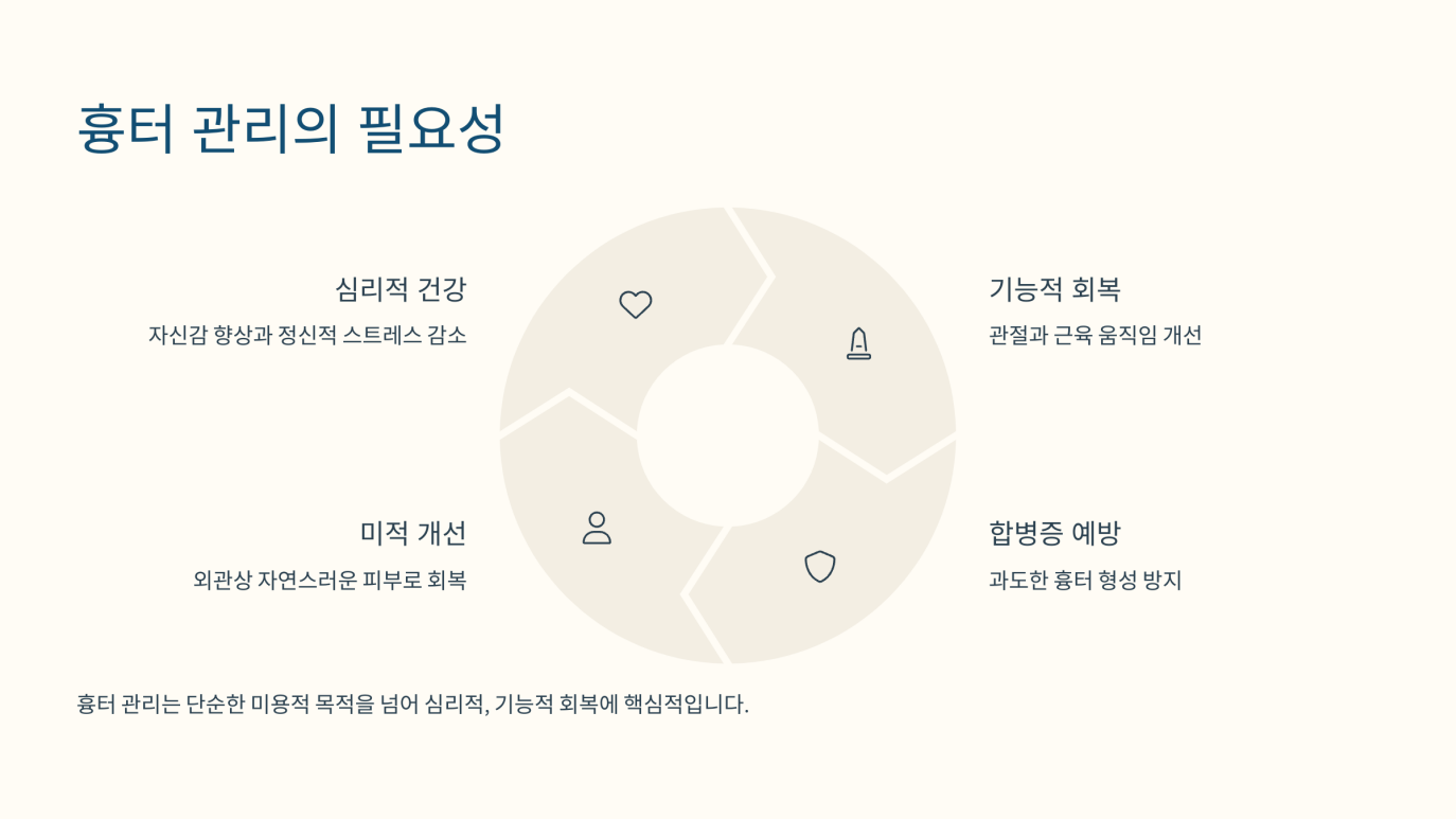 - 외적 콤플렉스 해소: 흉터가 크게 눈에 띄면 대인관계나 일상생활에서 자신감이 떨어질 수 있습니다.