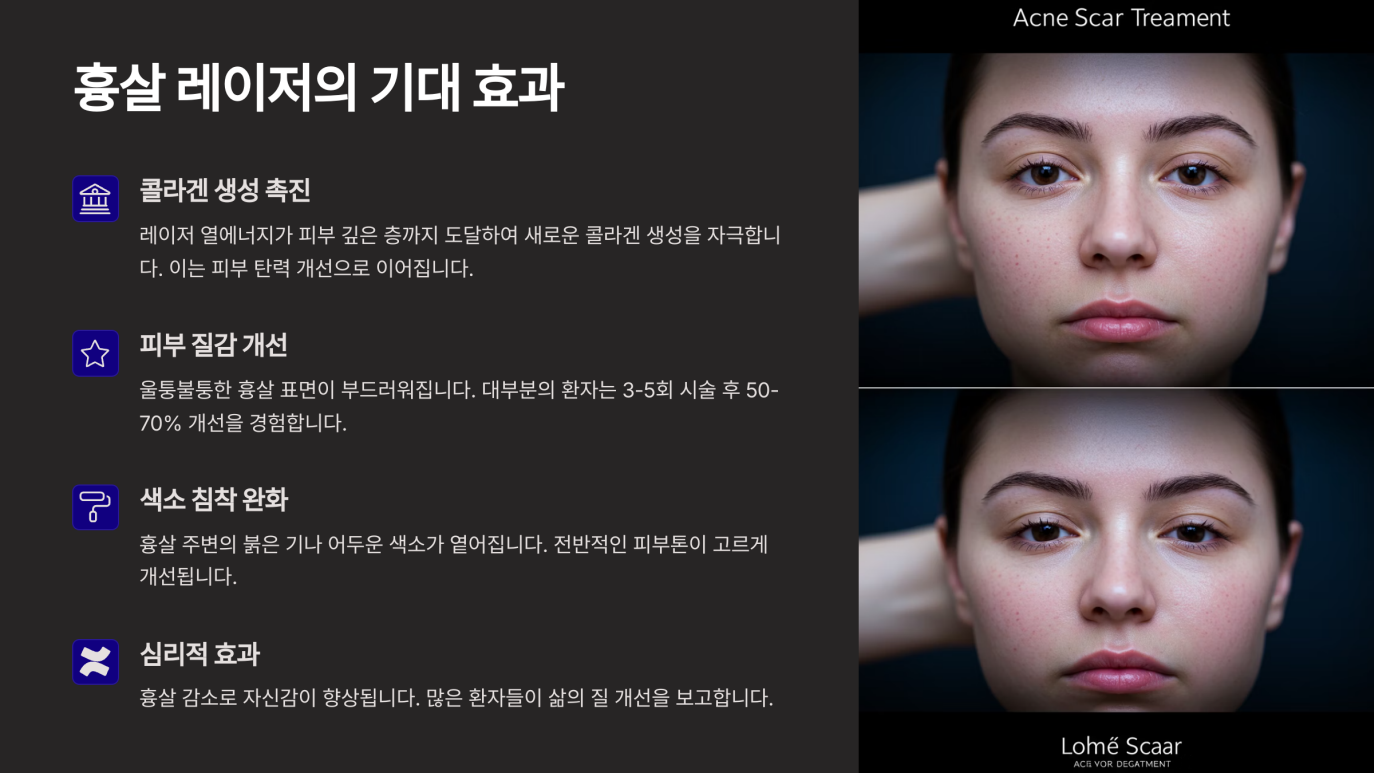흉살 레이저 시술을 통해 기대할 수 있는 효과는 크게 다음과 같습니다.