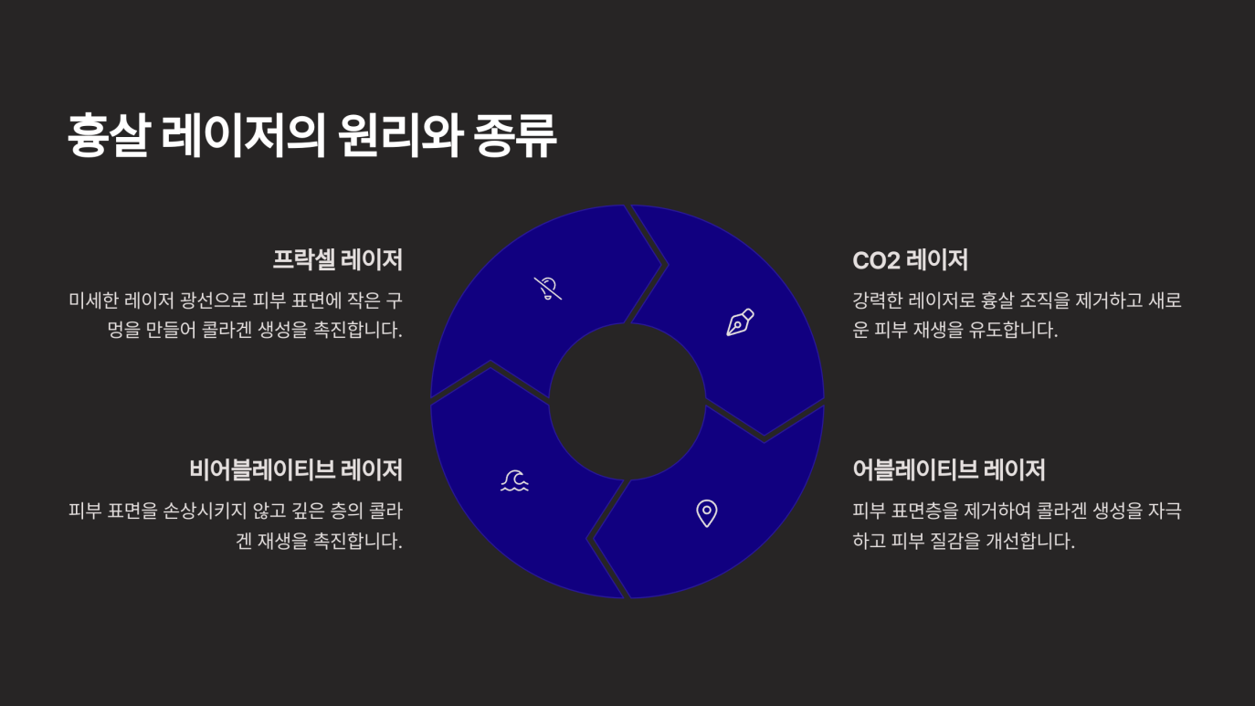 흉살 레이저 시술은 크게 다음과 같은 원리로 작동합니다.