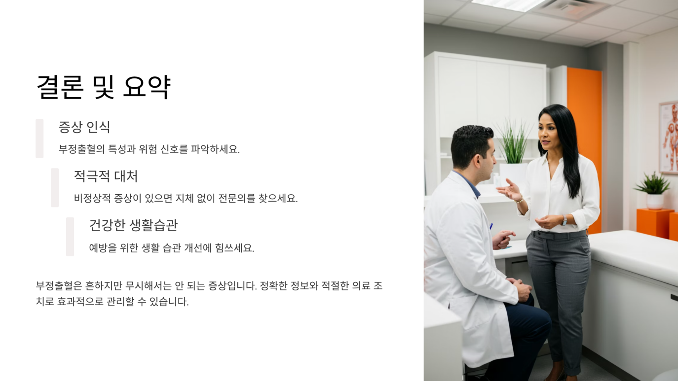 참고: 본 글은 일반적인 건강 정보를 제공하는 목적으로 작성되었으며, 의료 전문가의 진단을 대체할 수 없습니다. 부정출혈 덩어리 증상이 지속되거나 우려되는 경우 반드시 전문가의 상담과 검사를 권장합니다.