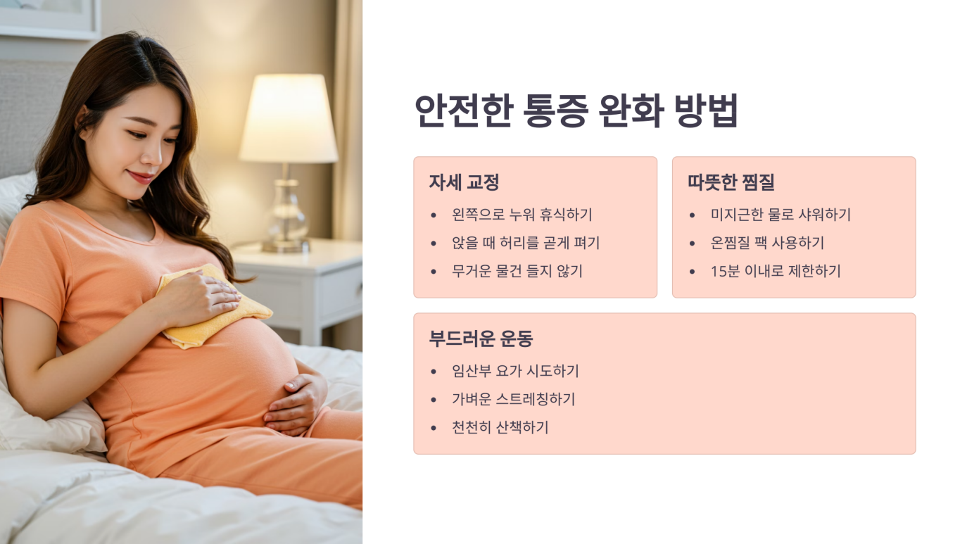 - 전문의 상담: 통증 양상이나 동반 증상이 심각하거나 장기화될 경우, 산부인과 전문의와 즉시 상의하여 안전한 임신 관리를 받을 수 있도록 합니다.