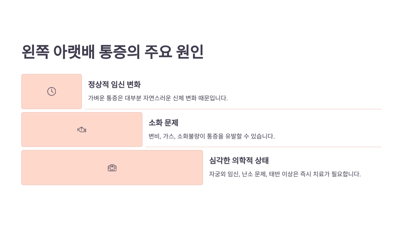 임신은 기쁨과 설렘을 안겨주는 특별한 시기이지만, 동시에 신체적으로 큰 변화를 겪게 됩니다. 왼쪽 아랫배 통증 임신 증상은 흔하게 나타날 수 있으나, 그 원인이 단순 소화 문제인지, 자궁 외 임신 또는 요로 감염 등 더 심각한 문제인지는 세심히 판단해야 합니다.