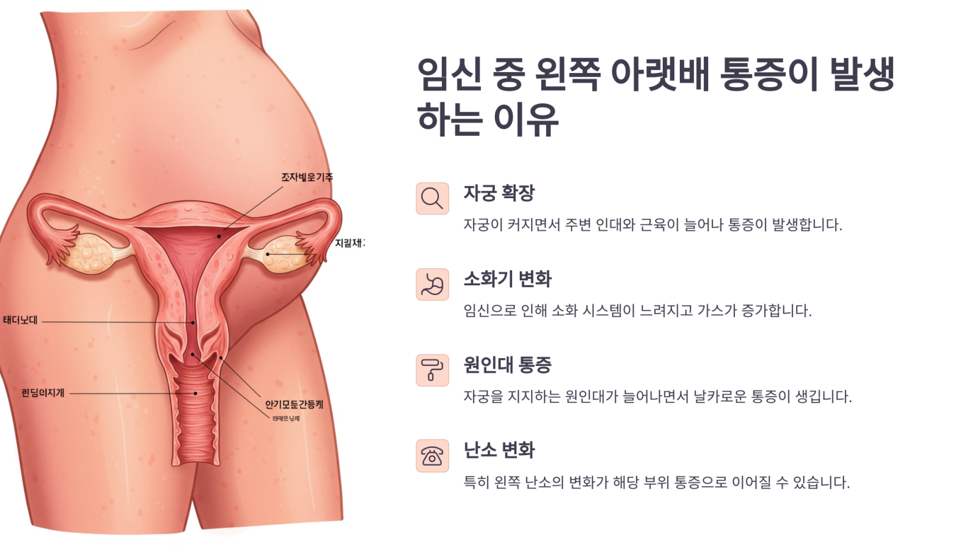 본 글에서는 임신 중 겪을 수 있는 왼쪽 아랫배 통증 임신과 관련된 다양한 원인부터 증상별 주의 사항, 그리고 안전하게 대처하는 방법까지 상세히 안내해 드리겠습니다.