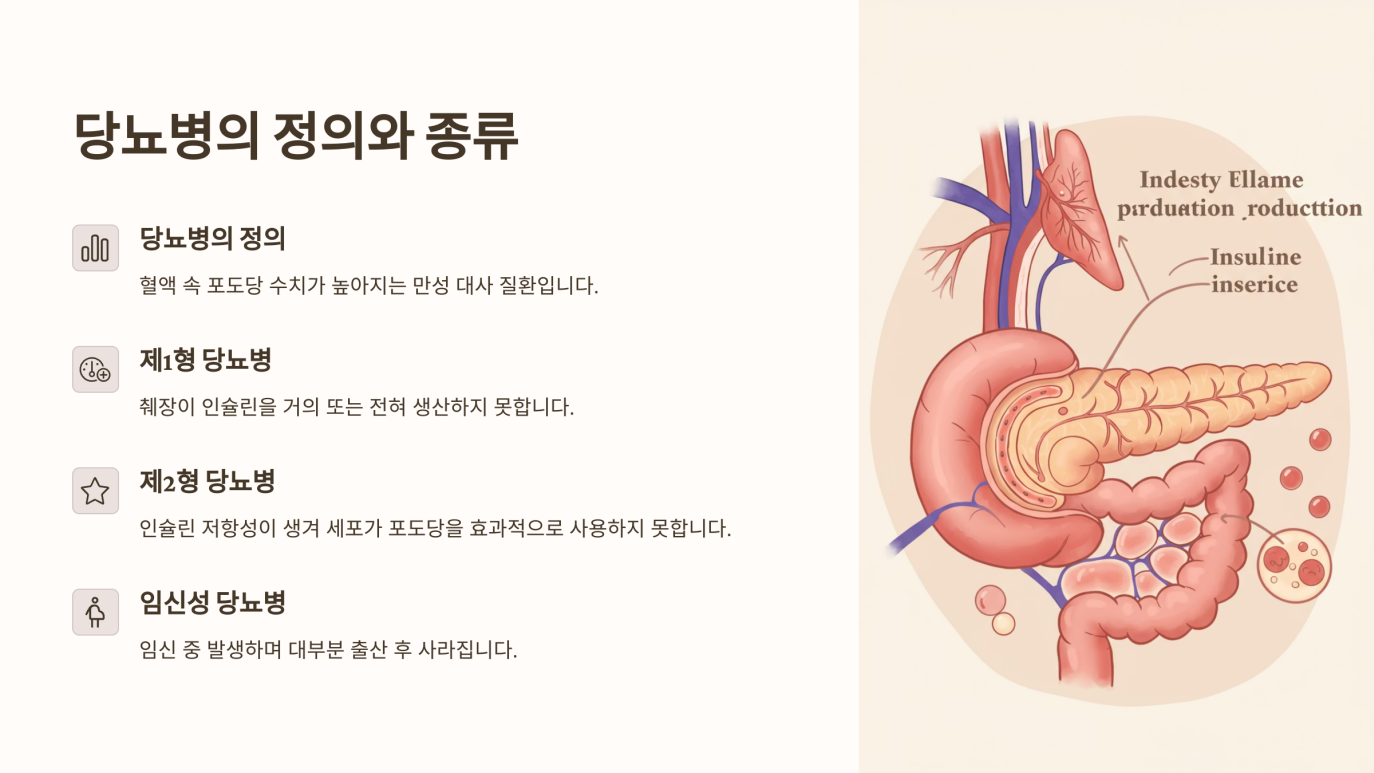 당뇨병은 인슐린의 분비 또는 기능 이상으로 인해 혈중 포도당 농도가 만성적으로 높아지는 대사 질환입니다. 혈당이 비정상적으로 높아지면 다양한 합병증이 발생할 수 있으며, 심한 경우 삶의 질이 급격히 떨어지거나 생명까지 위협받을 수 있습니다. 2025년 대한당뇨병학회 통계에 따르면, 국내 30세 이상 성인 중 약 15%가 당뇨병 또는 당뇨 전단계에 해당한다고 합니다. 이는 과거 10년 전의 통계치보다 약 3%p 이상 증가한 수치로, 현대인의 식습관 변화와 스트레스 증가 등이 주요 원인으로 꼽힙니다.