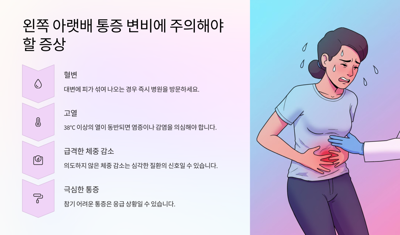 특히 왼쪽 아랫배 통증 변비가 지속되면서 혈변이 동반될 경우 즉시 병원을 방문하여 정밀 검사를 진행하는 것이 중요합니다.